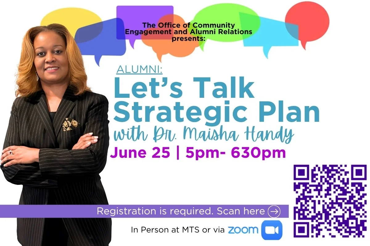 Alumni Event – Let’s Talk Strategic Plan with Dr. Maisha Handy Tuesday, June 25, 2025 | 5:00 PM – 6:30 PM