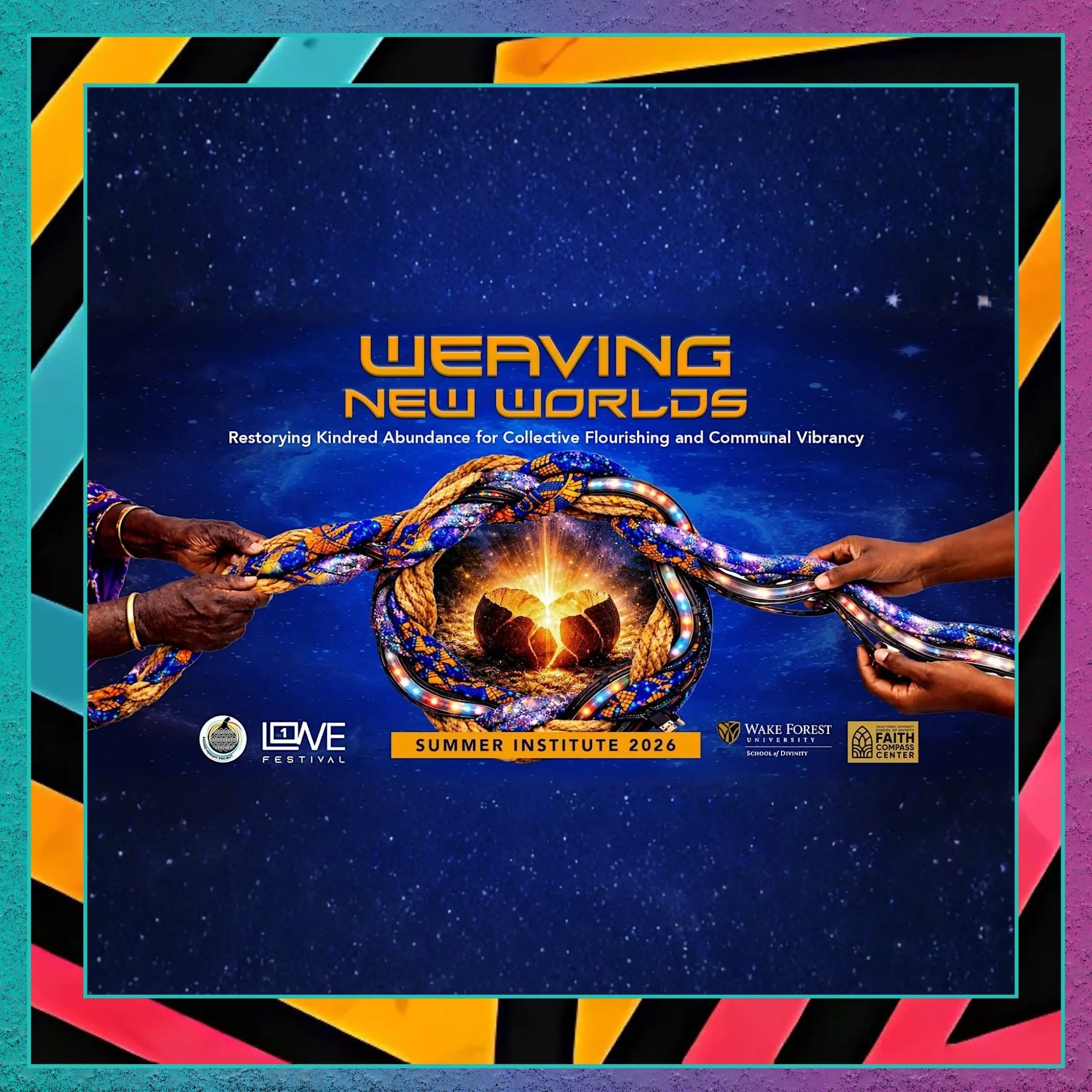 The 2026 Re-Storying Institute: Weaving New Worlds (June 25–27 in Winston-Salem, NC) is a natural extension of that mission. As a collaborative offering from McCormick’s Sacred Memory Project and Faith Compass Center at Wake Forest University School of Divinity with the 1Love Festival, the Institute gathers leaders, practitioners, and community members into a shared space of imagination and action. Through guided conversations, collaborative learning, and embodied practice, participants are invited to rethink scarcity, power, and value — shifting from competition and isolation toward care, reciprocity, and collective thriving. This is not abstract work. It is deeply practical, equipping participants with tools and relationships they can carry back into their own contexts.